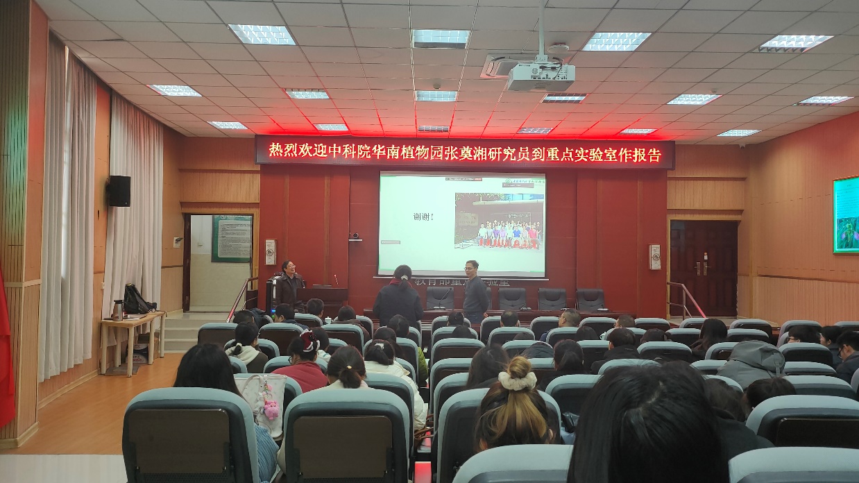 2024年12月17日,中国科学院华南植物园张奠湘研究员应邀到我院作学术报告。本次报告会是我院组织召开的“漓江生态与保护论坛”系列学术报告活动之一。我院张志勇副院长主持报告会,师生70余人参会。