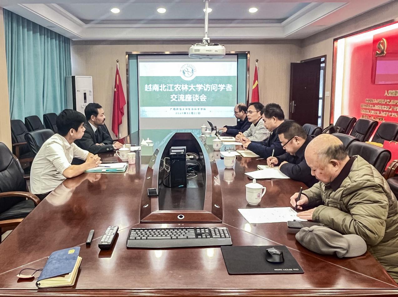 2024年12月23日,生命科学学院于雁山校区理科综合楼会议室召开了越南北江农林大学访问学者总结交流座谈会。此次会议旨在总结访问学者在广西师范大学的学习与研究成果,并探讨未来的合作机会。