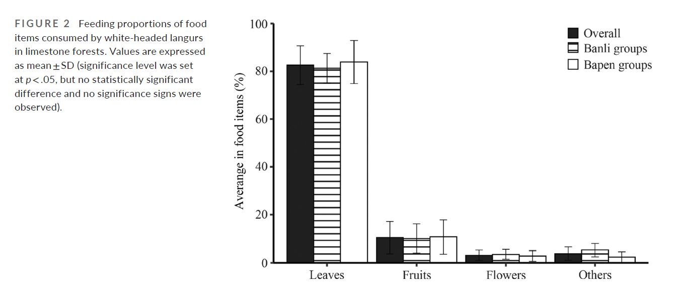 (2)Lai Y, Chen Y, Zhang K, and Huang Z. (2024). Diets of white-headed langurs (Trachypithecus leucocephalus) inhabiting limestone forests: The effects of habitat fragmentation and implication for conservation. Ecology and Evolution, 14: e11716. https://doi.org/10.1002/ece3.11716