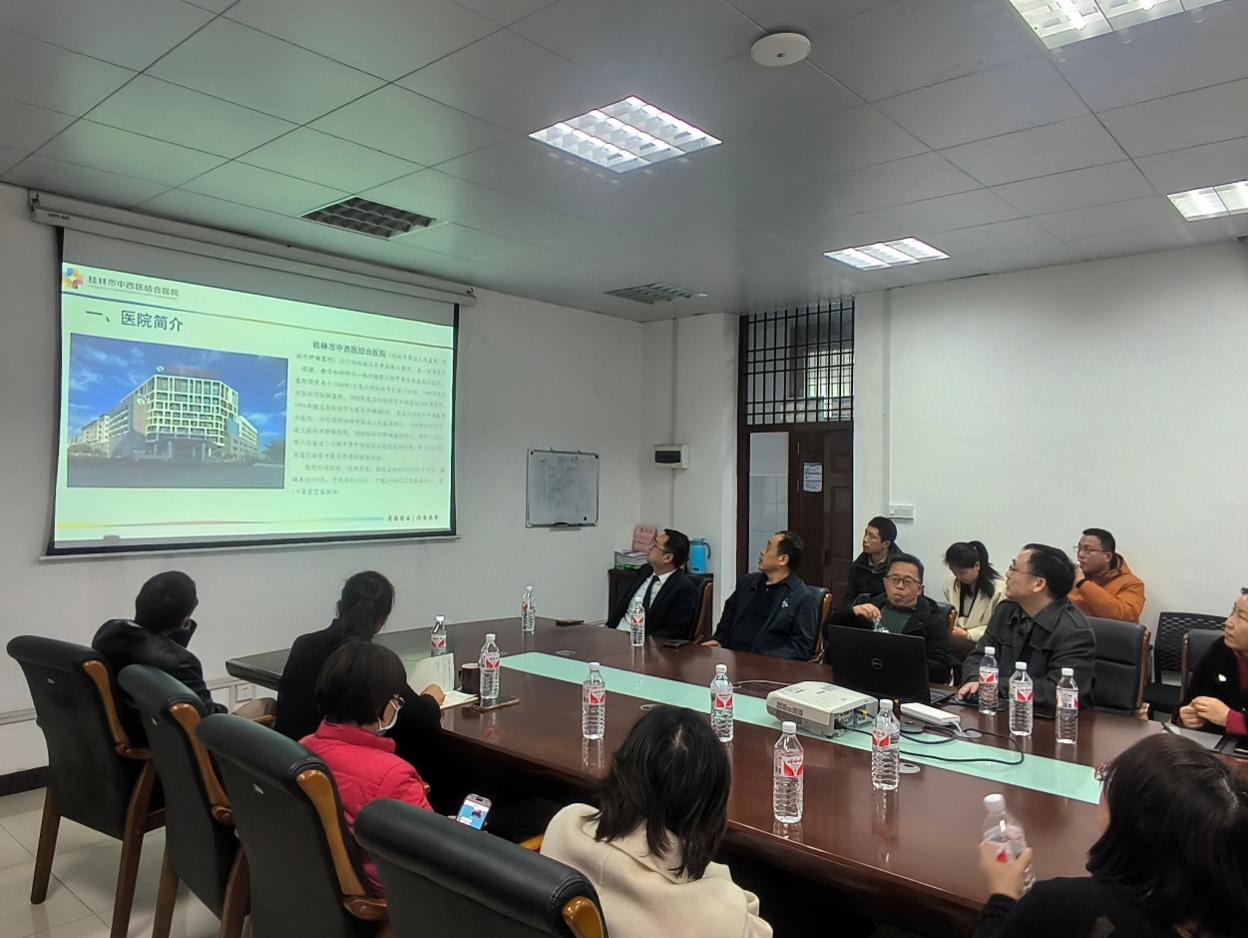桂林市中医结合医院杨景毅副院长全面介绍了医院的发展历程、学科建设以及在中西医结合治疗方面的特色优势。他表示,此次参观交流旨在寻求与高校及企业在生物医药领域的深度合作,共同推动科研成果的临床转化应用,为患者带来更优质的医疗服务。