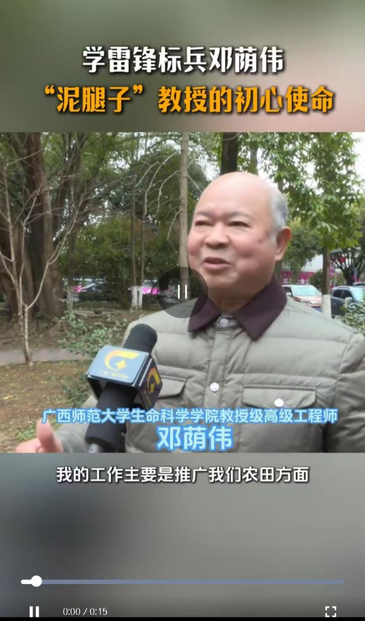3月5日,广西综艺旅游频道以《学雷锋标兵邓荫伟:“泥腿子”教授的初心使命》为文章题目,关注报道全国学雷锋标兵邓荫伟同志的初心使命。视频中,邓荫伟教授介绍,自己的工作主要是推广农业领域特别是经济方面的新技术、新成果,致力于促进农民朋友实现丰收,推进农业强、农村美、农民富!