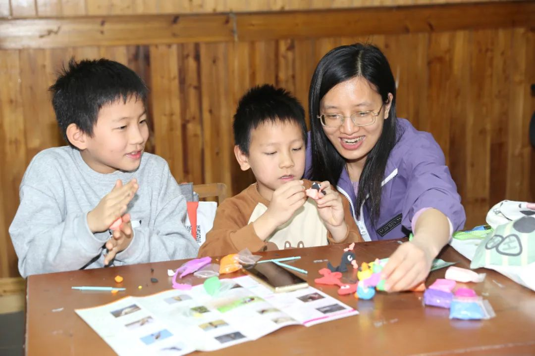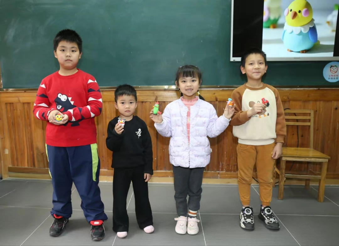 科学体验室内,小朋友们兴致勃勃地观察图片、动手捏塑,一只只彩泥小鸟跃然指间。