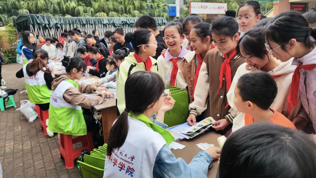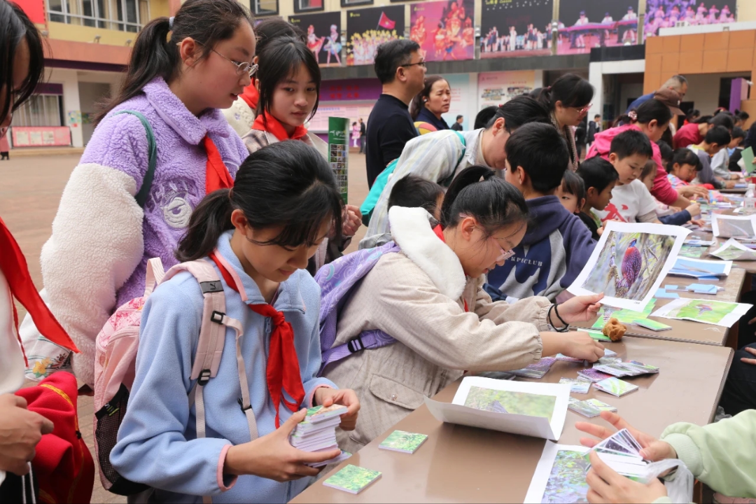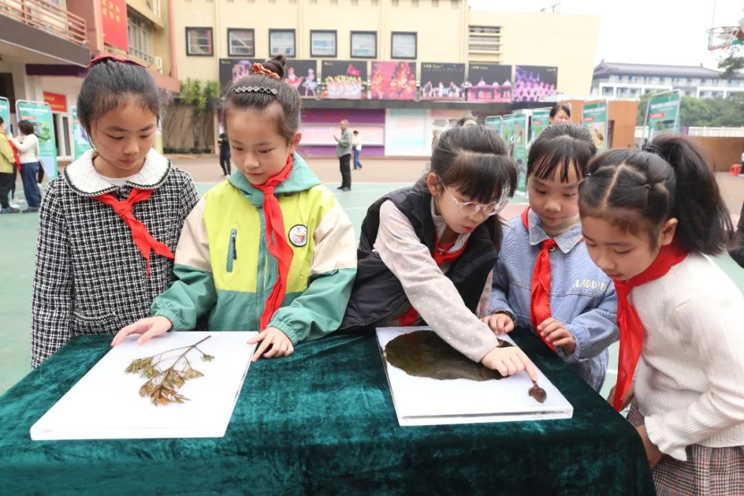 小太阳广场上,“爱鸟周”科普主题展览吸引了少先队员们的目光。广西师范大学生命科学学院的师生们精心布置了动植物标本展示区和鸟类知识展板,向少先队员们详细介绍广西区内的保护鸟类情况,队员们驻足聆听讲解,惊叹于鸟类的智慧与自然的神奇。
