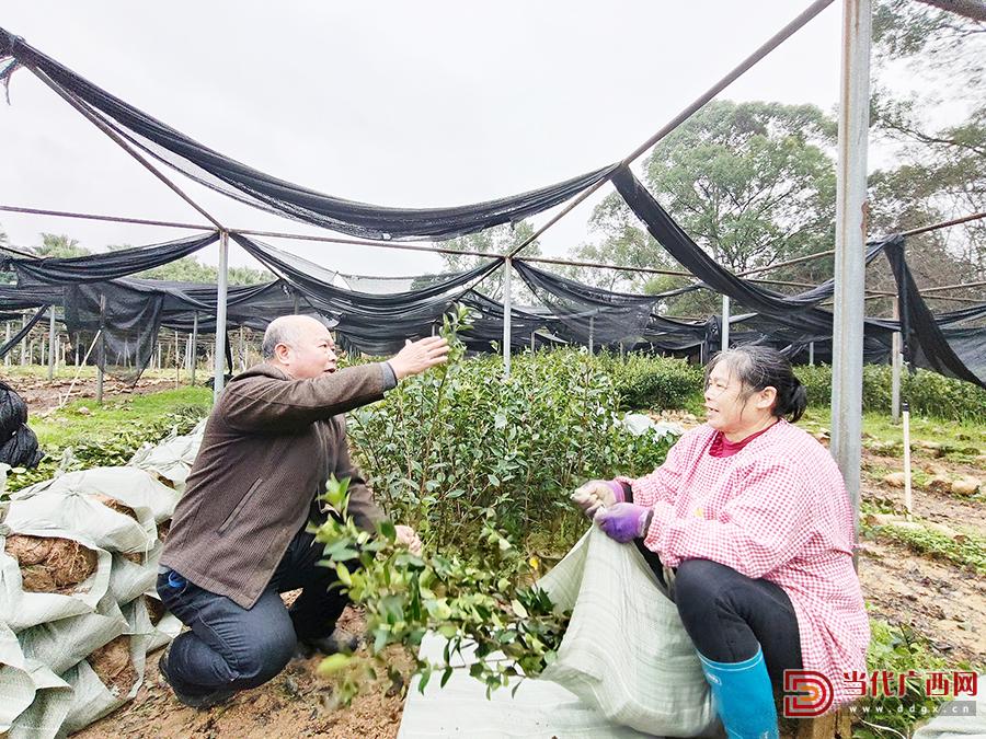 邓荫伟(左)指导农户挑选油茶苗。记者 邱烜 摄