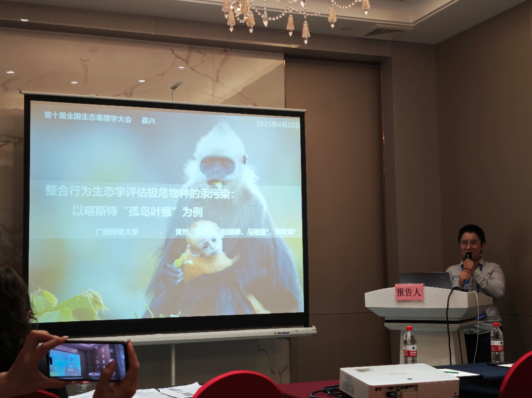 我院马艳菊老师和丁洋老师带领陈海丽和潘鸿燕两名研究参加了此次大会。马艳菊老师以《喀斯特生境中基于个体识别的白头叶猴汞暴露风险研究》进行专题报告。2023级生态学硕士研究生陈海丽和潘鸿燕在研究生论坛进行了口头汇报并作了墙报展示。