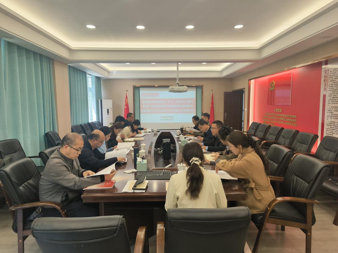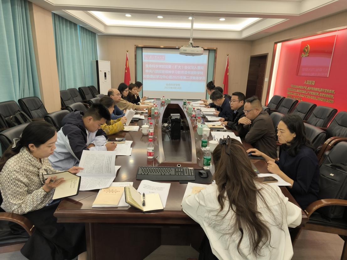 近日,生命科学学院党委在雁山校区理科组团224室组织召开党委(扩大)会议深入贯彻中央八项规定精神学习教育读书班暨学院党委理论学习中心组2025年第二次集体学习会议。会议认真学习贯彻习近平总书记关于深入贯彻中央八项规定精神学习教育的重要讲话和重要指示精神,就进一步推进学习教育在学院扎实开展进行再部署、再推进。