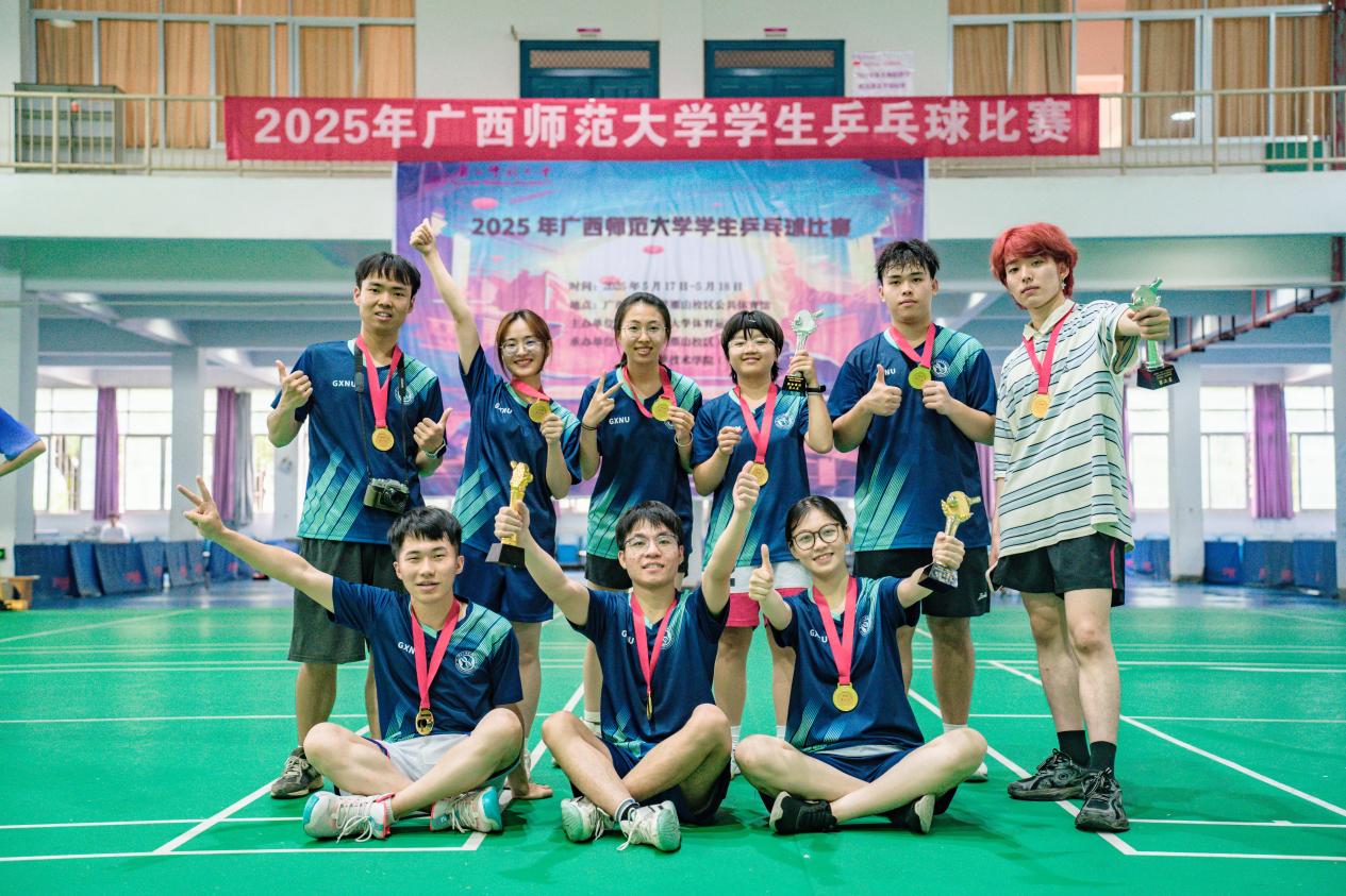 在2025年广西师范大学学生乒乓球团体赛中,学院学生乒乓球队凭借积分排名第一,荣获冠军。在广西师范大学研究生第一届“导学杯”乒乓球比赛中,学院研究生方媛荣获女子单打冠军,黄兰扦荣获女子单打季军,方媛和黄兰扦荣获女子双打冠军,涂景和任思沅荣获混合双打冠军。同时,学院还获得优秀组织奖。
