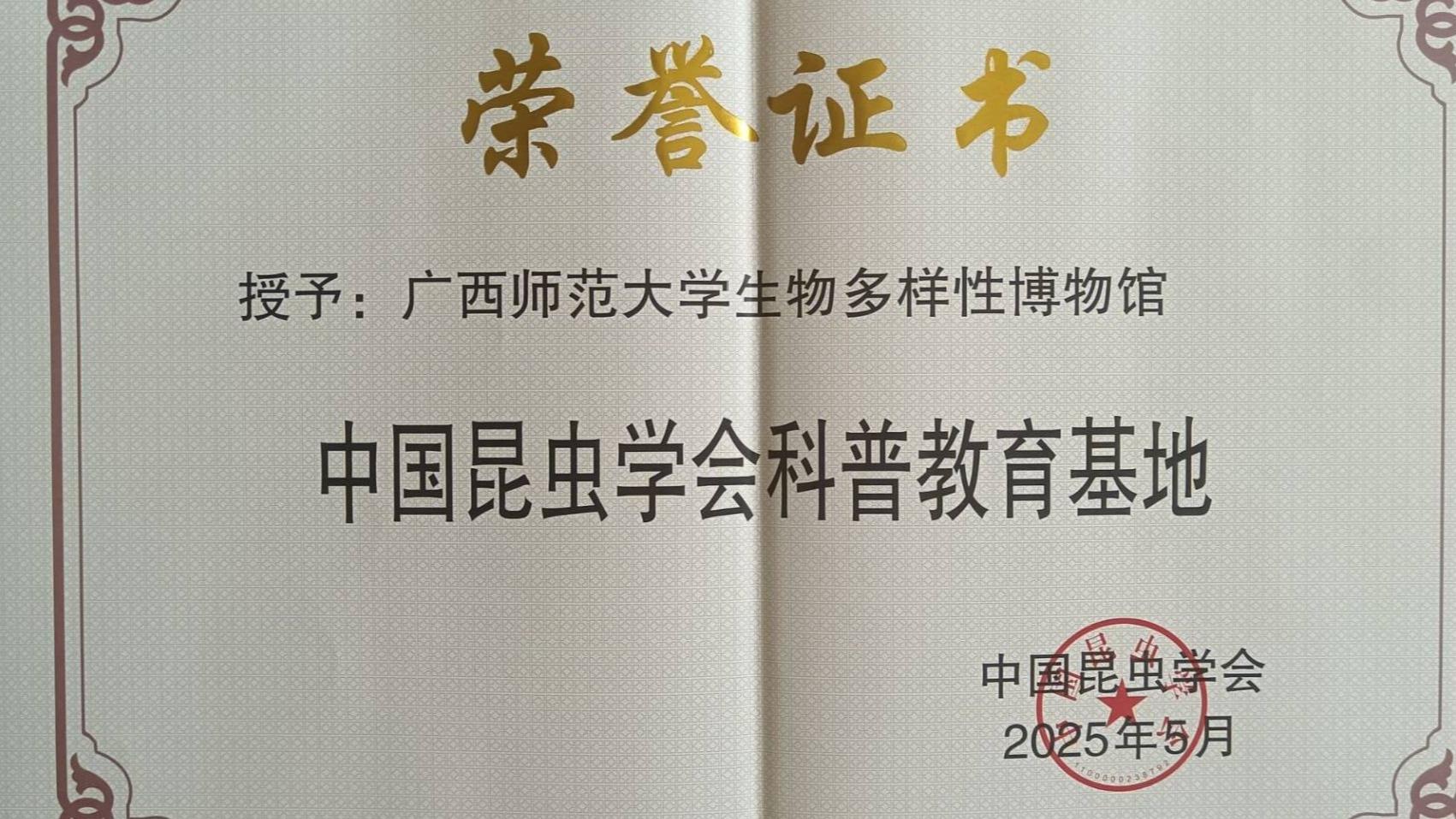 此次昆虫科普基地评选经学会专家评审、常务理事会批准,旨在挖掘科普资源、促进资源共享。广西师范大学生物多样性博物馆凭借丰富的昆虫标本、特色的科普活动,在众多申报单位中脱颖而出,为公众提供更优质昆虫科普服务。科普教育基地的设立,是传播昆虫科学知识的重要窗口,能够有效激发公众对昆虫学及自然科学的兴趣,助力提升全民科学素养,推动科普工作高质量发展,让更多人直观感受生物多样性的价值,共同守护人与自然和谐共生的生态家园。