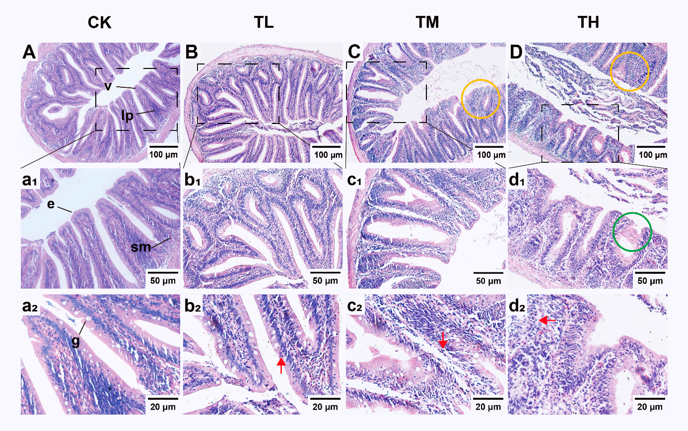 随着全球气候变暖,极端高温天气频发,对水产养殖业构成了严重威胁。鱼类作为变温动物,缺乏主动调节体温的能力,极易受到环境温度变化的影响。禾花鲤(Cyprinus carpio var.)是广西特色优势养殖鱼类,因肉质鲜美、营养丰富而深受市场青睐。然而,关于禾花鲤在升温环境下的生理和分子响应机制仍缺乏深入研究。研究通过对禾花鲤进行不同温度梯度(26℃—32℃)处理,发现其能够适应30℃以内的温度变化,较好的维持机体稳态;但当水温超过30℃时,禾花鲤出现了明显的肠道和肝脏组织损伤,抗氧化能力下降,免疫功能受到抑制。进一步研究发现,热休克蛋白(HSPs)和PPAR信号通路在鱼体应对高温胁迫中发挥了关键作用。该研究首次系统揭示了禾花鲤在高温胁迫下的生理和分子应答机制,成果不仅有助于指导养殖温度管理,还为筛选耐热品种和优化养殖模式提供了潜在靶点,为提升气候变化背景下水产养殖业的可持续发展提供了重要参考。