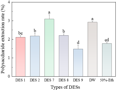 图1 不同NADES对小球藻多糖提取效率的影响