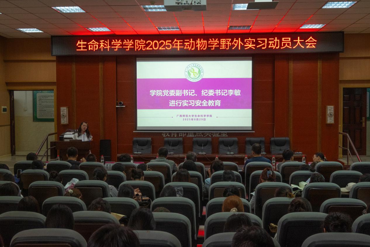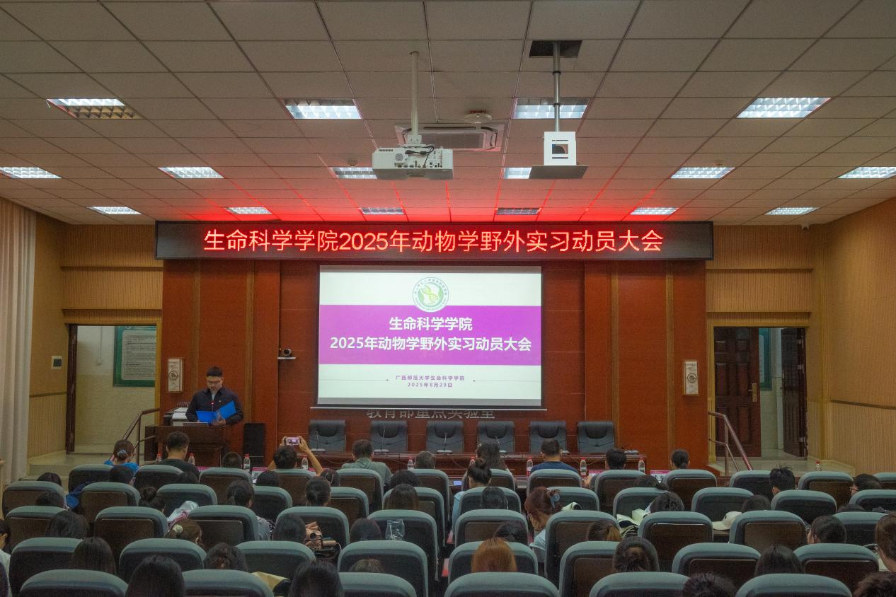 为保障动物学野外实习工作的有序开展,生命科学学院于8月29日下午在伯康楼112报告厅召开2025年动物学野外实习动员大会。学院党委副书记、实习指导教师及辅导员以及2023级全体本科生参加实习动员会。
