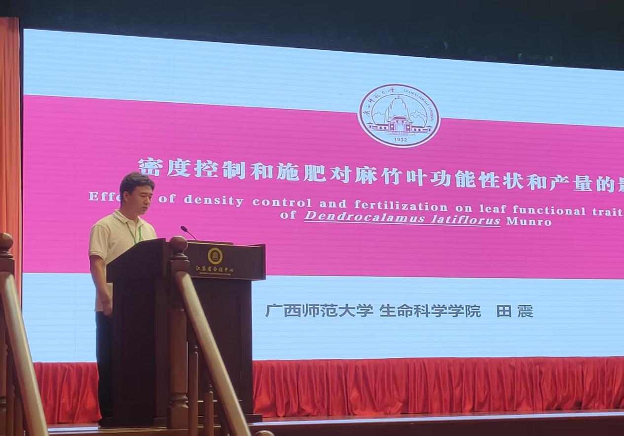作为林业领域极具权威性与影响力的学术盛会,此次会议汇聚了全国各地的经济林、银杏研究的精英、行业专家以及企业代表,为经济林和银杏产业发展搭建了高层次的交流平台。会议聚焦“森林食品开发与森林粮库建设”这一主题,围绕银杏和经济林基础研究、经济林种业创新、智慧经济林创建等六个方向开展学术交流。我院2022级林业硕士生田震同学作了以“密度控制和施肥对麻竹叶片功能性状和产量的影响”为题的学术报告。