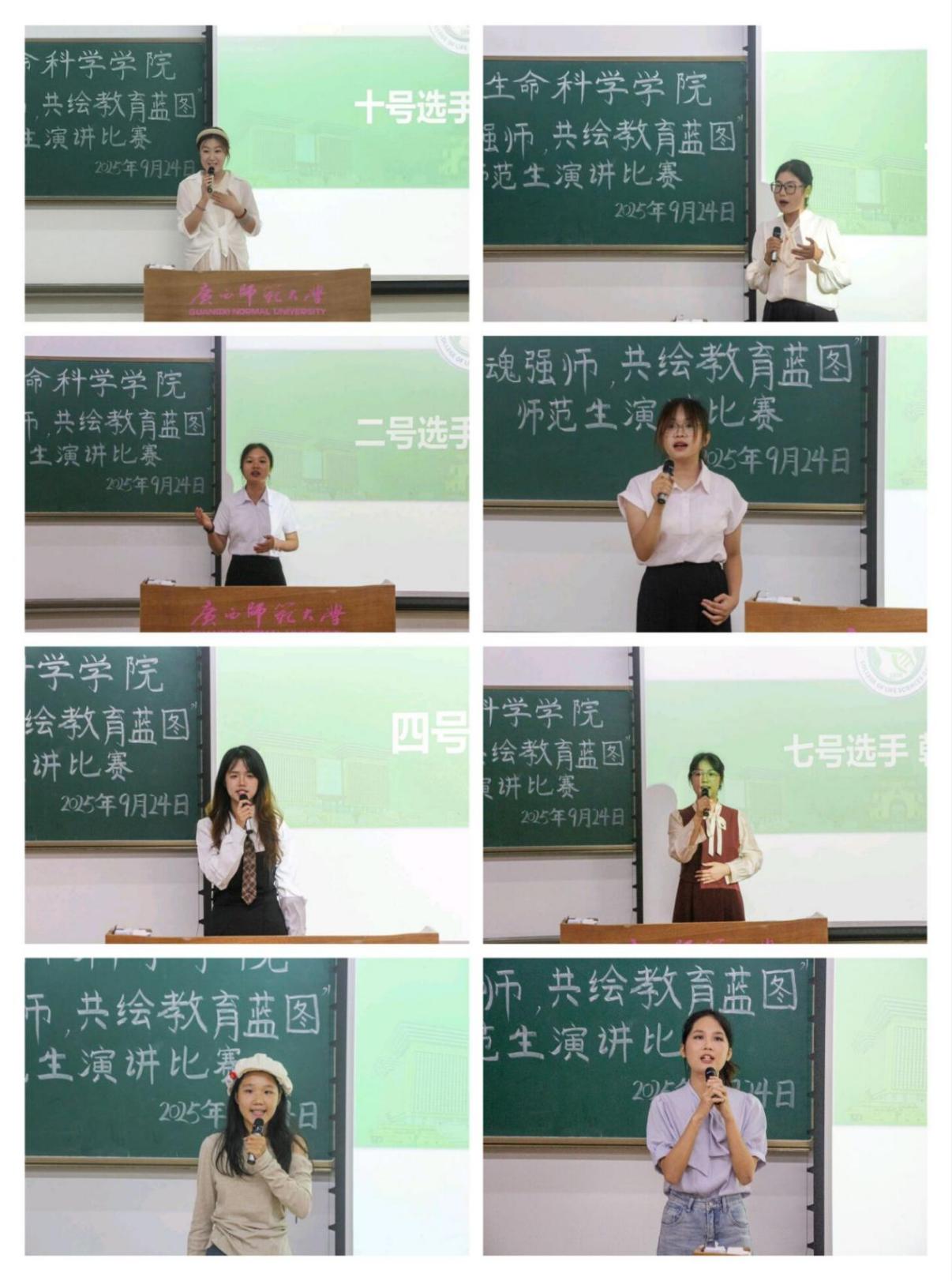 本次比赛分为班级初选与院级决赛两个阶段。各班级积极组织班级比赛,并选拔出优秀选手参加院级决赛。决赛现场,17名选手围绕主题,结合生物学科特色与教育情怀,以流畅的表达、真挚的情感,讲述育人故事,阐释强师内涵,展望教育愿景。选手们深情讲述陶行知和张桂梅等教育家的教育理念和先进事迹,解释传授知识和启迪心灵等教师职责,展现新时代师范生的专业素养与使命担当,赢得在场师生的阵阵掌声。