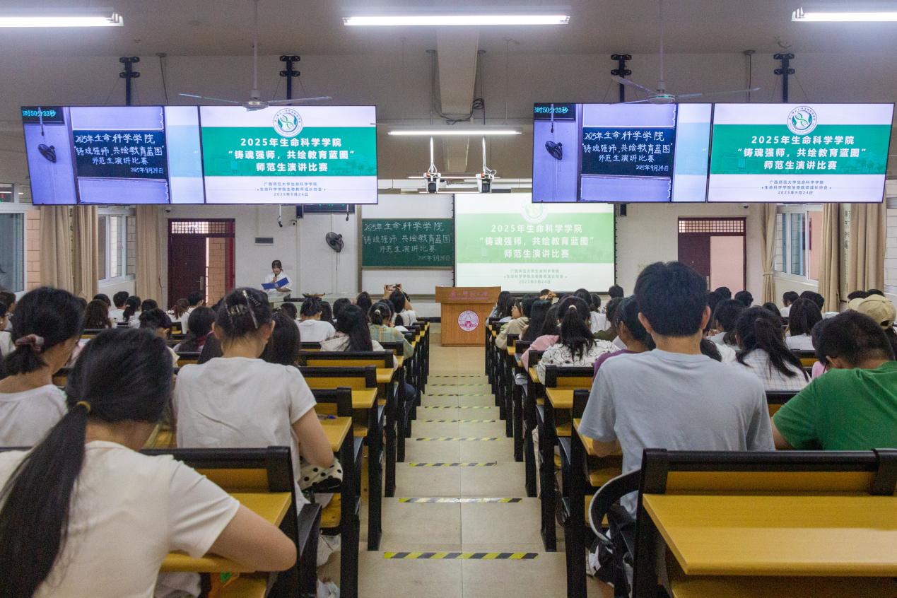 为弘扬教育家精神,强化师范生从教信念,提升师范生综合素养,9月24日,生命科学学院在雁山校区理科楼四区203教室举办“铸魂强师,共绘教育蓝图”师范生演讲比赛。学院党委副书记、专职辅导员及本科生观众共计180余人观看比赛。