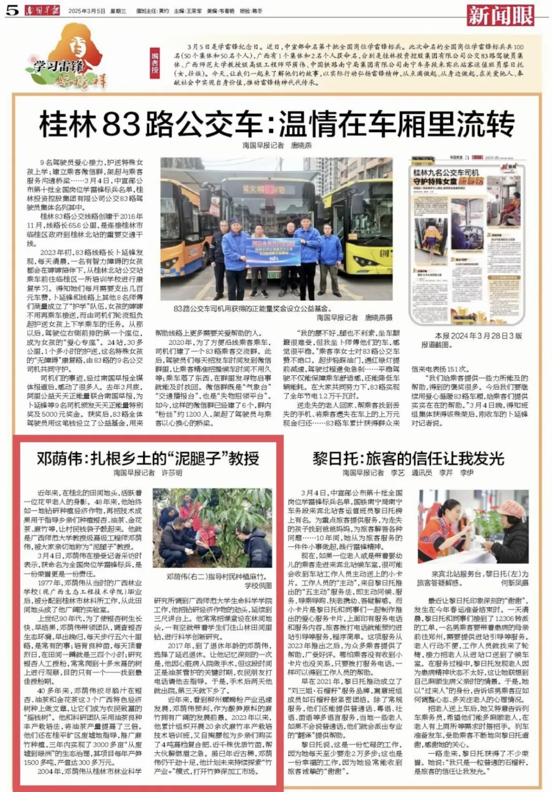 如今,这位“有劲”的“泥腿子”教授仍然奋斗在扶农助农、服务乡村、服务地方经济的道路上,开展南酸枣矮化栽培技术研究,积极推广油茶、金花茶高效栽培等先进技术,以实干为笔,以田野为卷,书写新时代的“雷锋答卷”。