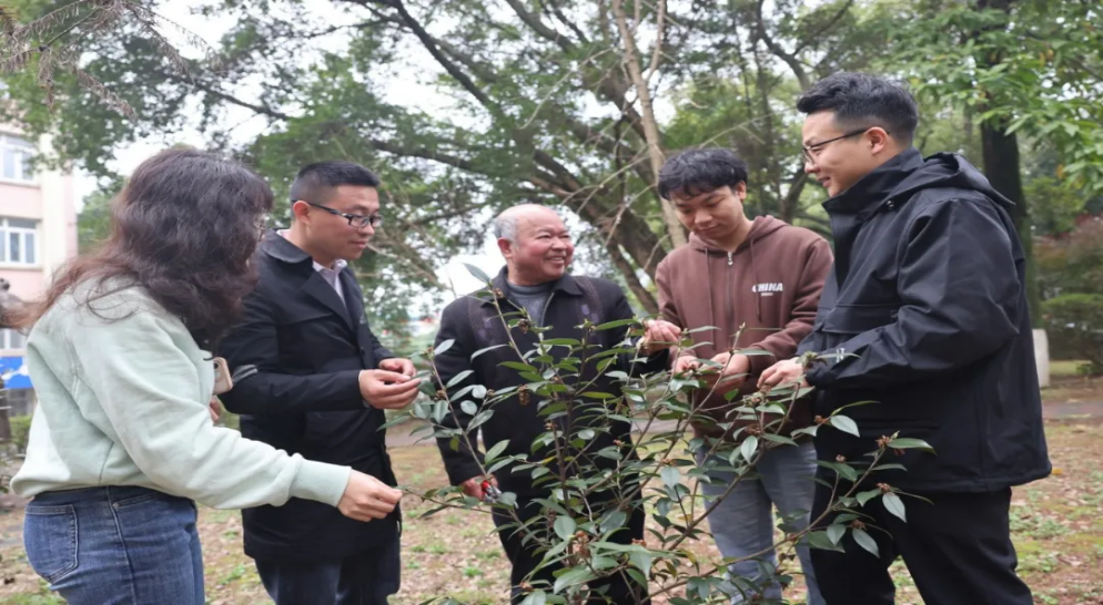 因此,他常带领学生们到油茶种植点之一的灵川县,躬身示范,手把手指导学生完成对油茶的良种选育、苗木培育、抚育施肥等工作。