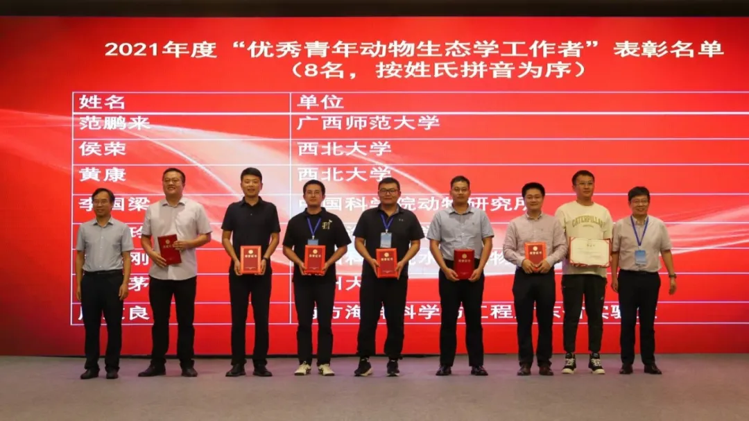 2021年,范鹏来(右四)获2021年度全国“优秀青年动物生态学工作者”表彰