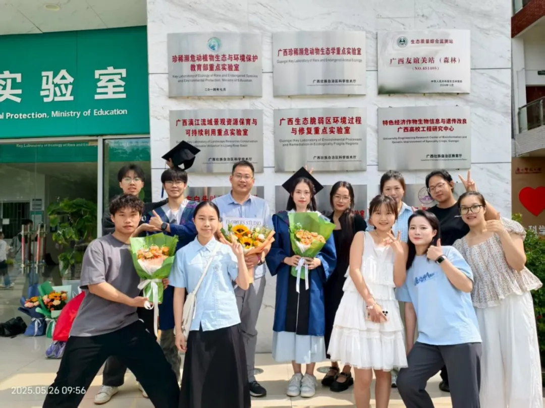 范鹏来教授从不让知识停在课本上,鼓励学生锐意进取,在实践中解决问题,赋予知识真正的价值。黎紫舒回忆本科时期参加竞赛的经历:“那时候,范老师推荐我担任团队组长参加生命科学竞赛,从比赛材料的反复修改到国赛答辩的逐字打磨,每个环节他都严格把关。我在一次次的挑战中学会了思考、挖掘潜能。对我而言,范老师不仅是一位学术上的导师,更是一位指引我走进动物保护领域的领路人。”截至目前,范鹏来教授以第一指导教师身份累计指导学生斩获全国大学生生命科学竞赛一等奖1项、二等奖1项,广西赛区奖项3项;指导本科生获批自治区级大学生创新训练项目2项;指导1名硕士研究生获得国家奖学金;1名硕士研究生获得广西壮族自治区普通高等教育优秀大学毕业生。