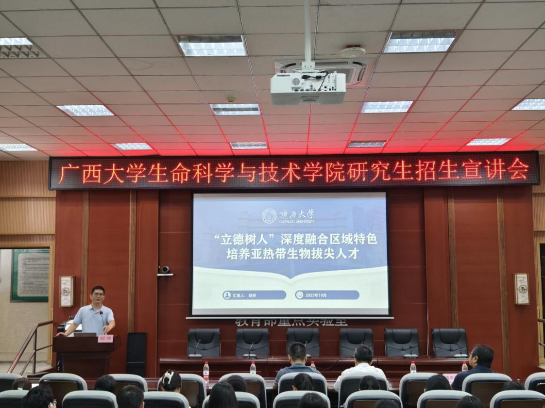会前,广西大学生命科学与技术学院面向我院本科生和研究生举行了研究生招生宣讲会,详细介绍了本院的基本概况、发展思路与布局、科研建设成果以及研究生奖助体系等内容,为参会学生提供了深入了解该院研究生教育的机会。