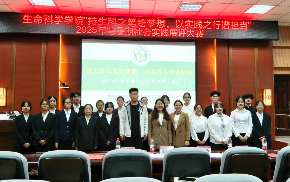 为践行“纸上得来终觉浅,绝知此事要躬行”的实践理念,彰显青年“挺膺担当立潮头”的时代风采,生命科学学院于10月24日在伯康楼112报告厅举办“持生科之笔绘梦想,以实践之行谱担当”2025年暑期社会实践展评大赛。学院党委副书记、专职辅导员以及2025级本科生与研究生代表参加此次活动。