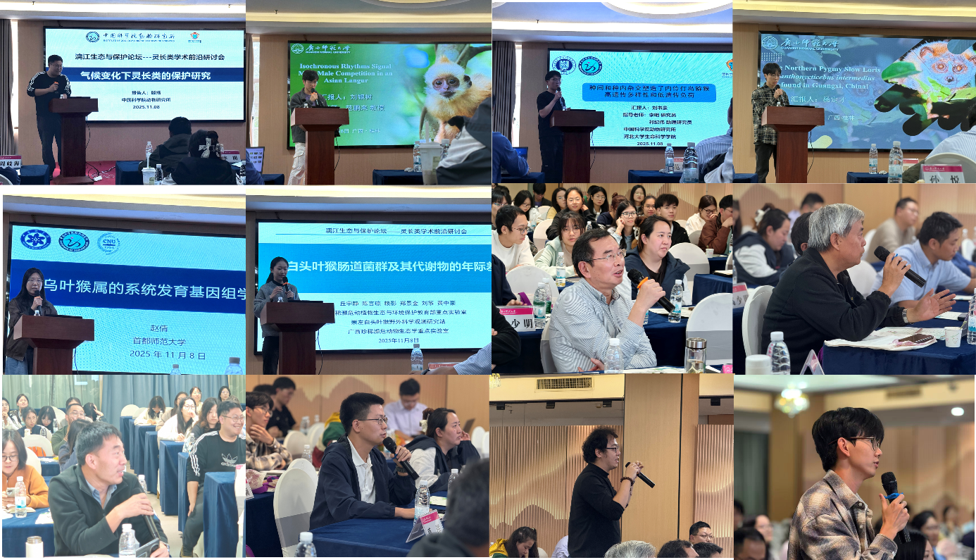 2025年11月7日至10日,"漓江生态与保护论坛——灵长类学术前沿研讨会"在桂林伏波江景漓江边度假酒店成功举办。本次会议由广西师范大学生命科学学院、珍稀濒危动植物生态与环境保护教育部重点实验室、广西崇左白头叶猴野外科学观测研究站及广西珍稀濒危动物生态学重点实验室联合主办。