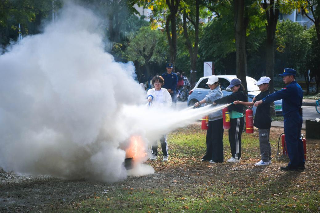 活动伊始,雁山区金雁消防救援站指导员为师生讲授了一堂生动的消防安全课。课程聚焦高校生活与学习环境中的安全问题,重点讲解了宿舍用电安全、实验室管理规范等实用知识,并详细剖析了火灾初期的应对策略与逃生技巧。在现场教学环节,指导员亲自演示了灭火器的正确操作步骤,同学们踊跃参与灭火实战演练,通过亲身体验加深了对灭火技能的理解和掌握。