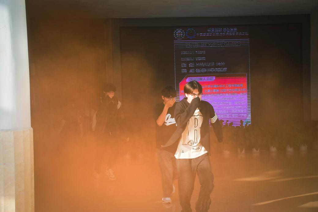 随着警报声响起,实验室应急疏散演练拉开序幕,伯康楼与生物学实验教学中心迅即进入应急状态。在消防教官及实验中心老师的指引下,同学们沉着冷静、低姿弯腰、捂住口鼻,沿既定疏散路线快速有序撤离至安全区域。整个疏散过程组织严密、衔接顺畅,达到了演练的预期效果。