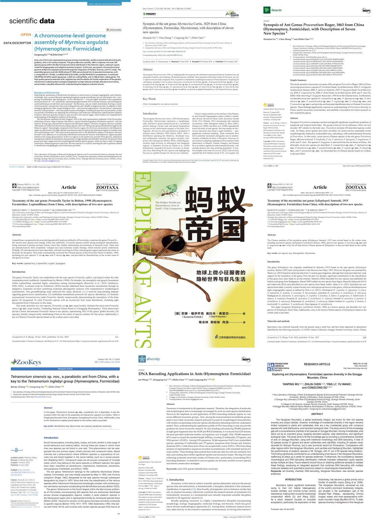 Gu, Z., Zhang, C., Du, C., &Chen, Z*. (2025). Synopsis of the ant genus Myrmecina Curtis, 1829 from China (Hymenoptera, Formicidae, Myrmicinae), with description of eleven new species. Deutsche Entomologische Zeitschrif, 72 (2): 395-448.