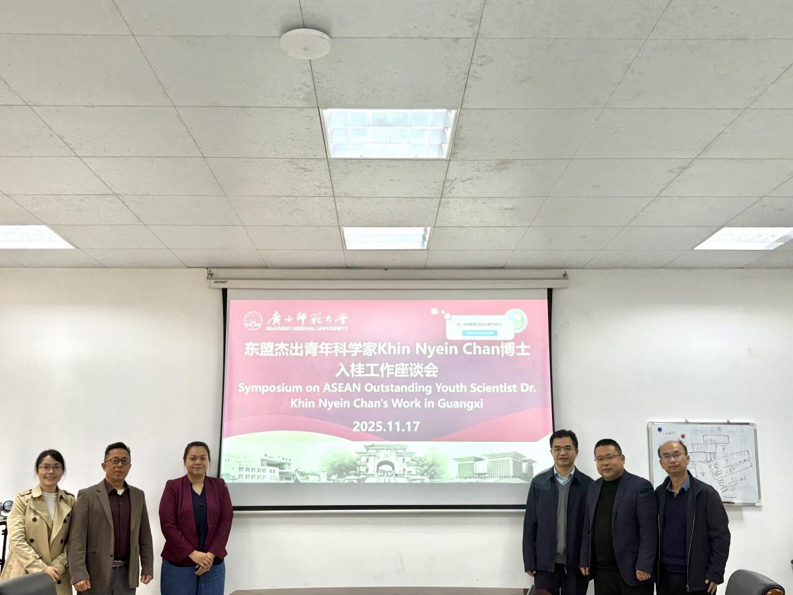 2025年11月17日下午,生命科学学院在育才校区国家重点实验室2号楼304会议室东盟杰青入桂科研工作计划推进交流会。缅甸籍东盟杰出青年科学家Khin Nyein Chan(陈钦年)、学院党政主要负责人、教育部重点实验室负责人、相关学科团队负责人等参加会议。