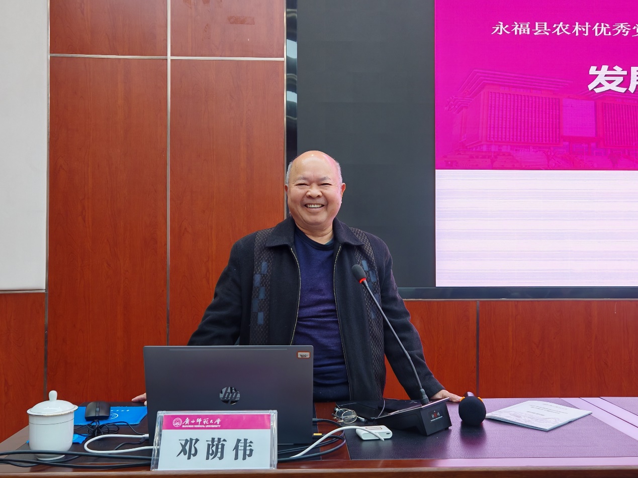 2025年11月27日,全国岗位学雷锋标兵、桂林市劳模和工匠人才创新工作室领衔人、广西师范大学生命科学学院二级教授邓荫伟,受邀为永福县农村优秀党员能力提升专题培训班授课。110名扎根基层一线的农村优秀党员齐聚一堂,认真聆听题为《发展特色产业助力乡村振兴》的专题讲座。整场培训既有理论政策的高度指引,又有产业实践的鲜活案例,干货满满、直击需求。课后,党员们争相添加邓教授微信请求“长效指导”,成为培训中一道暖心又务实的风景线。