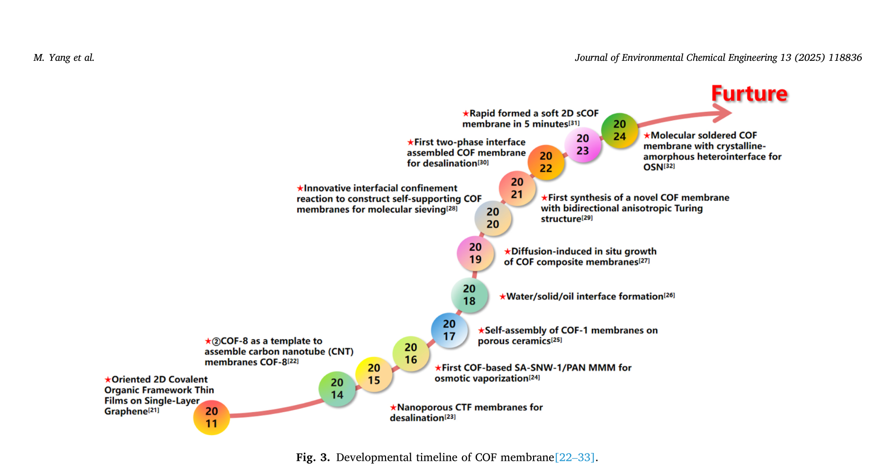 该综述论文以 “Preparation of covalent organic framework mixed matrix membranes and their application in liquid separation”为题,在线发表于工程技术领域期刊《Journal of Environmental Chemical Engineering》(中科院二区,IF 7.2,2025年升级版)。广西师范大学珍稀濒危动植物生态与环境保护教育部重点实验室、广西漓江流域景观资源保育与可持续利用重点实验室及澳大利亚联邦科学与工业研究组织(CSIRO)为论文共同完成单位。广西师范大学在读研究生杨孟元为第一作者,广西师范大学田华丽博士与 CSIRO 吴惺研究员为论文共同通讯作者,实验室李丽香老师共同参与研究。本项工作获得广西自然科学基金(2025GXNSFBA069135)、广西科技基地与人才专项计划(Gui Ke AD23026161)的共同资助。