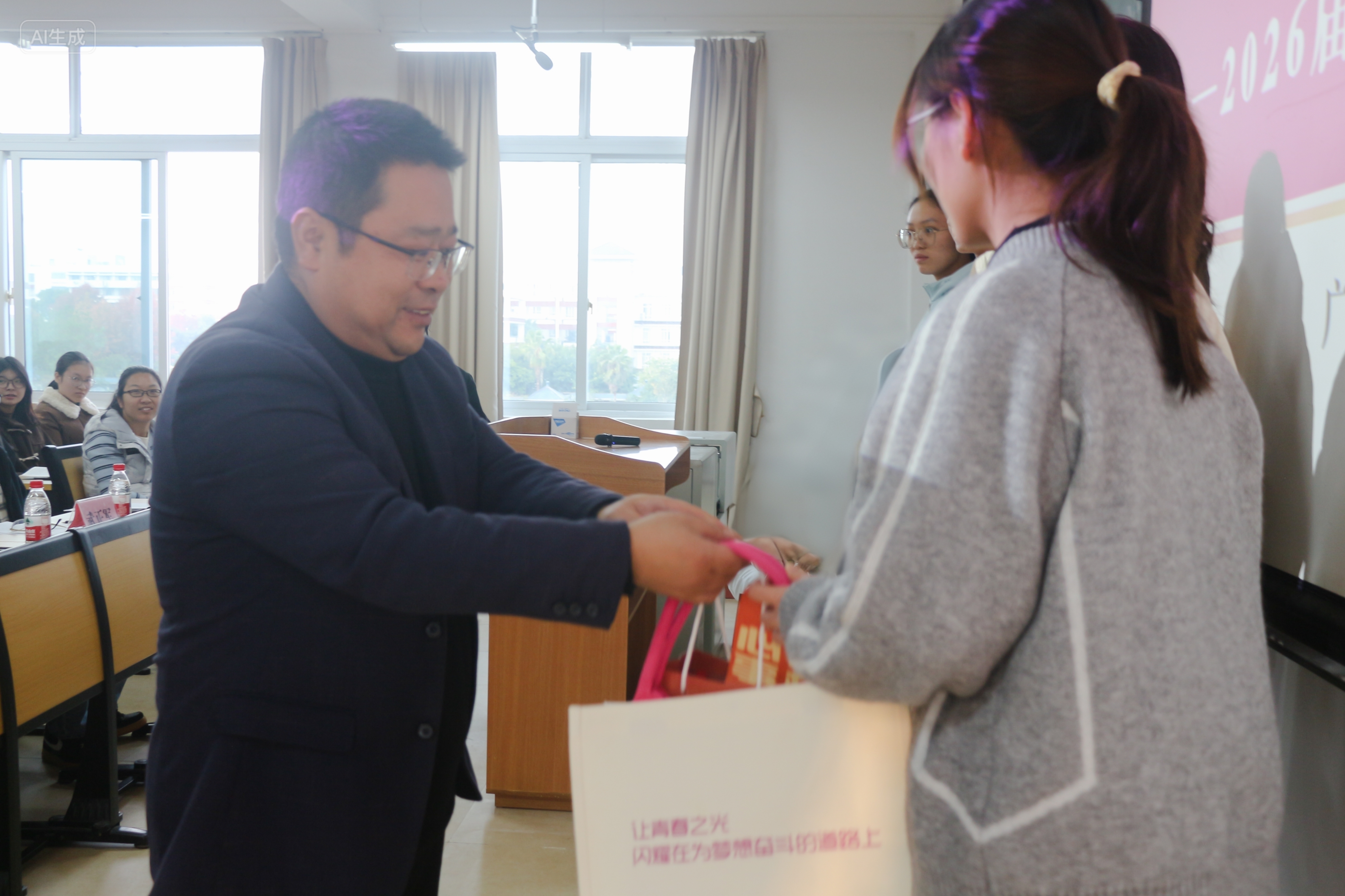 随后,学院党委书记和院长分别为考研学生代表发放学校与学院精心准备了内含实用文具和美好祝愿的暖心“考研加油包”。
