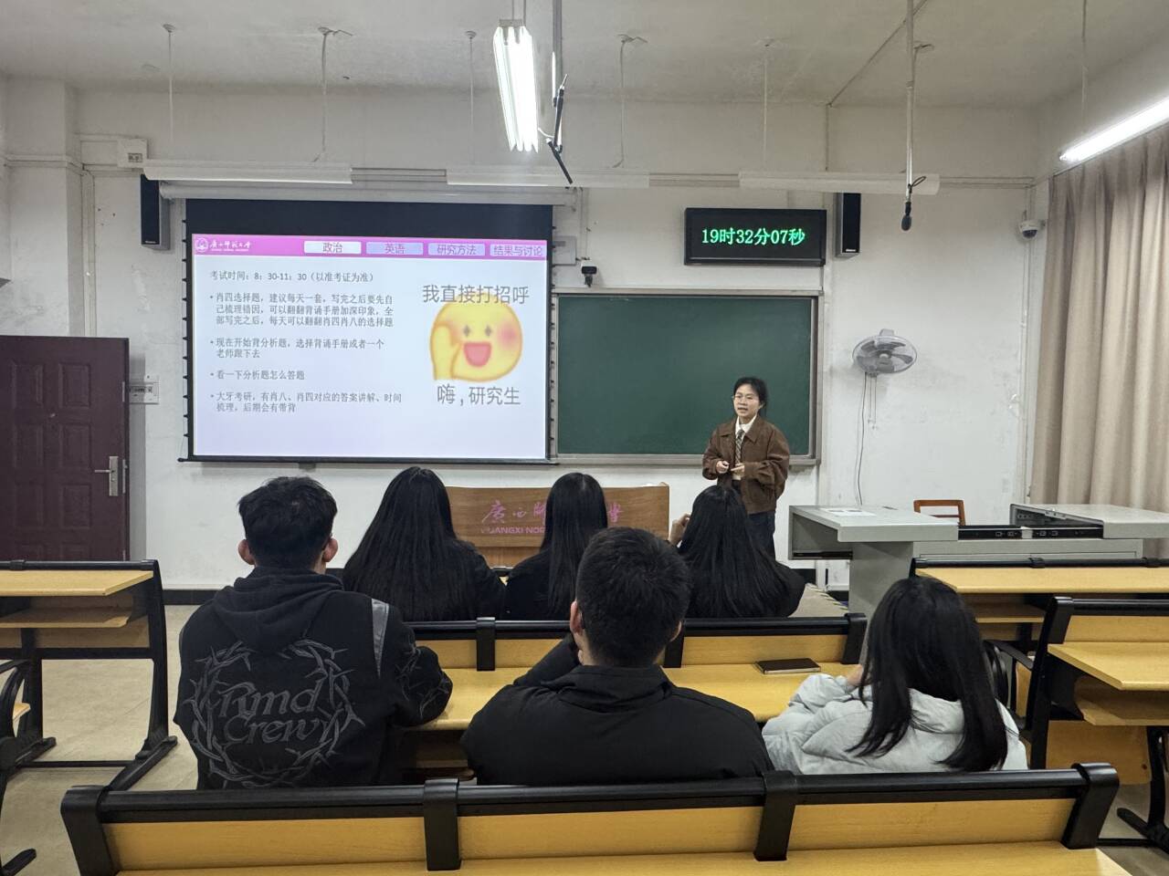 作为学院考研护航的重点一环,活动衔接了前期动员、经验分享、心理支持、送考慰问等全周期环节,形成从备考到冲刺的完整支持链条。学院将持续整合导师和平台资源,迭代辅导模式,为考研学生提供更具针对性的学业支撑与更具温度的人文关怀,助力考研学生学业提升。