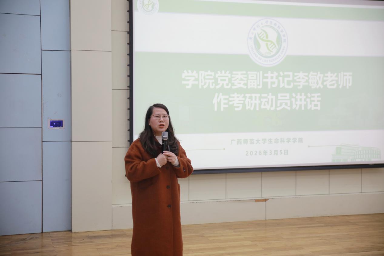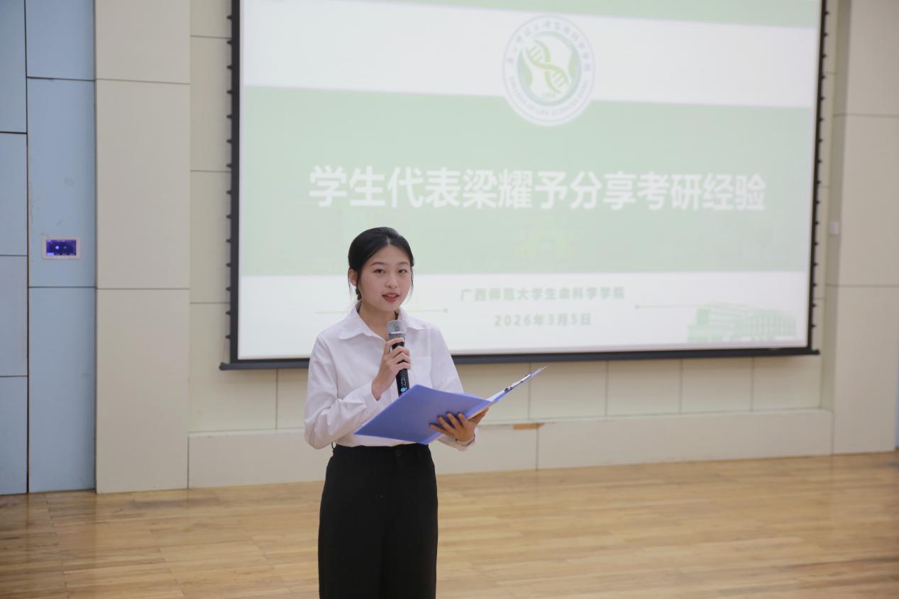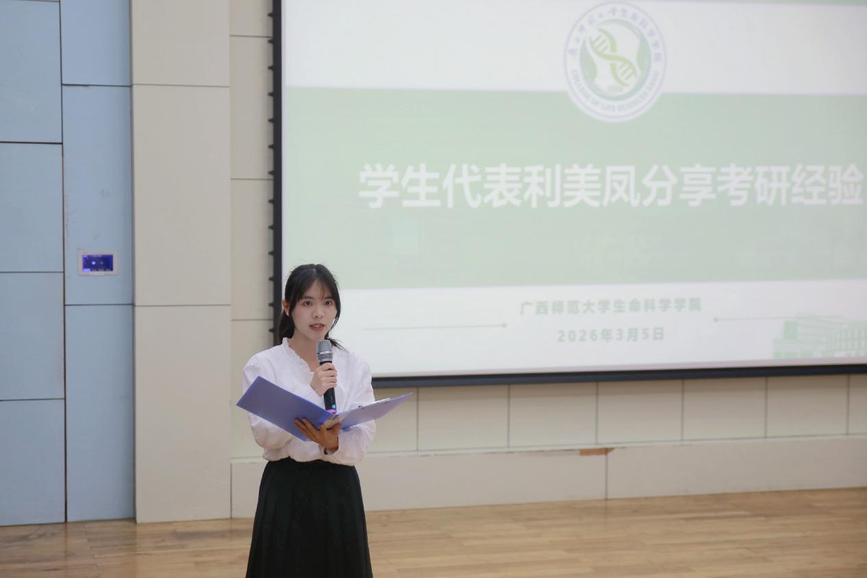 考研动员环节,学院党委副书记深入分析生命科学领域发展趋势与考研前景,勉励学生科学规划未来,确立考研深造目标,将个人发展融入国家战略需求,以更高平台实现人生价值。研究生代表分别从政策解读、院校选择、备考策略等方面分享心得,为同学们提供可借鉴的成长路径。