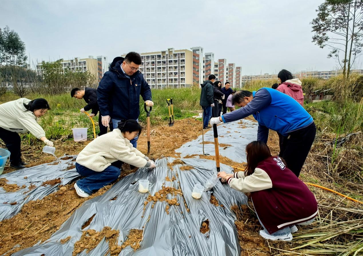 为深入学习贯彻习近平生态文明思想,切实强化跨学科支部联动实效,近日,生命科学学院生物实验教学中心教工党支部与文学院/国际中文教育学院/新闻与传播学院教工第三党支部联合开展“支部共建促融合·田间实践悟初心”主题党日活动。两支部党员教师齐聚生科院教学实践基地,为校园“植”此青绿。