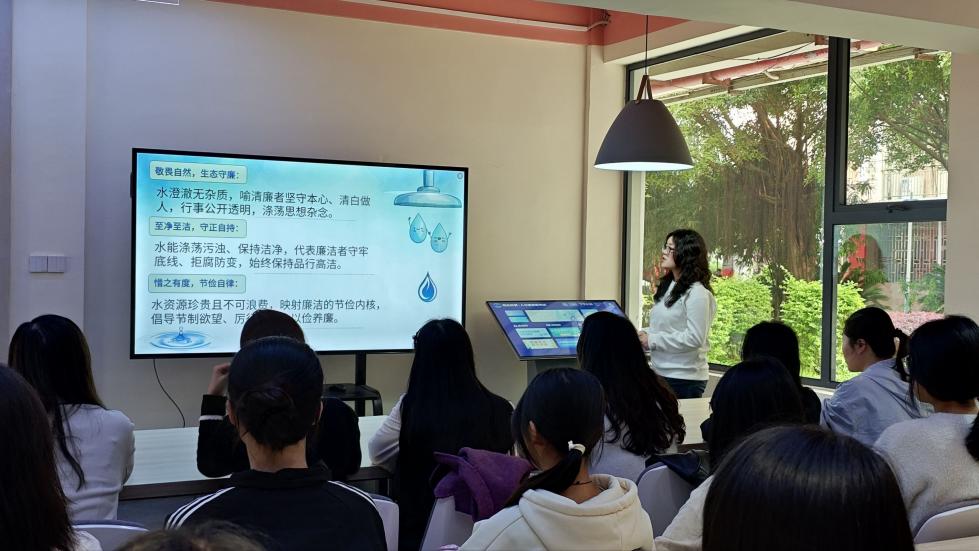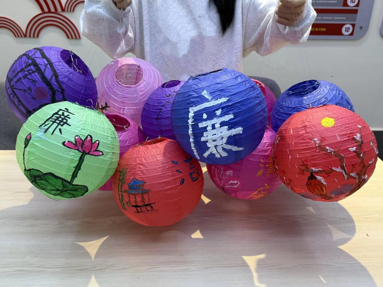 在“悟水品廉”微课堂上,主讲人以水的清澈透明喻清廉本色,以水的公平无偏喻公正处事,以水的节俭自律喻绿色低碳,引导同学们在感悟“上善若水、清廉如水”的精神内核中,把生态廉洁理念内化于心。在廉灯制作环节,同学们以灯为媒、以画言志,在灯罩上勾勒莲花、梅花、翠竹、流水等清廉意象,书写廉洁警句与节水宣言,在一笔一画中体悟廉意,在一灯一愿中浸润初心,让抽象的廉洁理念在沉浸式创作中化为具象表达、入脑入心。活动尾声,指导老师勉励同学们以水为镜、以廉为标,在点滴中涵养品格,在坚守中砥砺初心。