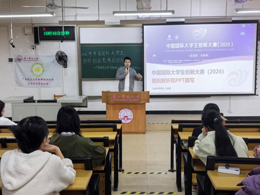 为激发学生创新创业热情,有序推进新一年度赛事备赛工作,生命科学学院于3月31日在雁山校区理4-203教室举行2026年创新创业竞赛启动仪式。