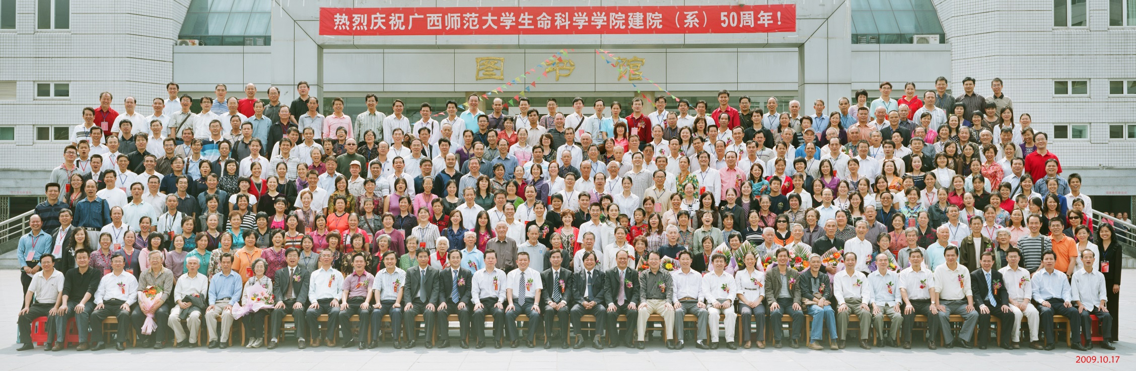 广西师范大学生命科学学院的前身是1958年秋成立的广西师范学院生物学教研室。1959年4月,自治区人民政府正式决定广西师范学院创办生物学系,首任系主任为国家二级教授陈伯康先生;1959年秋季,生物系开始招收第一批生物学专业大学本科生70名,是广西第一个培养生物学师资和科研人才的基地2002年9月,学校决定组建成立生命科学学院,下设生物科学系、生物技术系两个系。一甲子筚路蓝缕,六十载春华秋实。60年来,学院历届师生开拓进取,砥砺前行,在人才培养、学科建设和科学研究及社会服务等各方面取得了优异成绩,为国家和地方高等教育、经济社会发展作出了重大贡献。